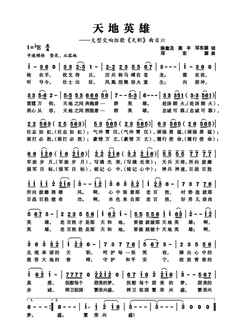 歌曲《天地英雄》作曲兼
