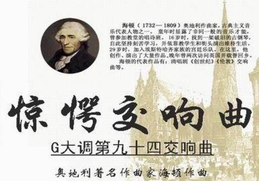 【映帆知識(shí)分享】驚愕交響曲(它還有一個(gè)名稱,創(chuàng)作者為海頓,常易與《鼓聲交響曲》混肴)驚愕交響曲 驚愕交響曲,還有一個(gè)名稱,又被稱為叫做海頓《G大調(diào)第九十四交響曲》。是在公元一七九一年的時(shí)候完成了該曲的創(chuàng)作。此曲為十二部《沙洛蒙交響曲》之三。據(jù)說,相傳有一段故事:在當(dāng)時(shí)倫敦的貴婦們是音樂會(huì)的常客,借欣賞交響曲點(diǎn)綴風(fēng)雅,每每在樂隊(duì)演奏時(shí)打瞌睡。海頓頗為不悅,對(duì)人說:“我要寫一部“驚醒音樂,嚇?biāo)齻円惶!毕⒈煌嘎冻鋈ィ伦髌费葑嗟哪翘,音樂廳座無虛席。其中,第一樂章,奏鳴曲式,極快板,音樂纖巧暢達(dá);然后,第二樂章,變奏曲形式,行板,弱奏開始,無大變化。聽客們十分輕視這種催眠似的音樂,覺得與以往的作品大同小異,貴婦們又在昏昏入睡了。劑那間,樂隊(duì)全奏,爆發(fā)出強(qiáng)烈的和弦和定音鼓的猛擊聲,酷似驚雷忽起,狠狠地將打盹的人嚇了一跳,以為地動(dòng)山搖,有的從椅上跳起,有的直竄門外……然而音樂卻仍然安安穩(wěn)穩(wěn)地進(jìn)行著;第三樂章,快速的小步舞曲,復(fù)三部曲式,音樂詼諧而富于活力;最后,第四樂章,奏鳴曲式,急速的快板,主題具有歌謠風(fēng)味,略帶感傷的情調(diào),端莊高雅的貴婦們出了丑,海頓感到很快活;第二樂章的“巨雷”只不過是一場(chǎng)玩笑而已,傻眼的貴婦們“驚醒”之后,也都不禁大笑起來。與作者的《告別交響曲》一樣,都屬于一種幽默的筆觸。常易與《鼓聲交響曲》混肴。