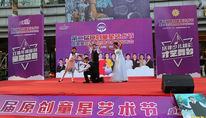 2022年元旦三天,第二屆原創(chuàng)童星藝術(shù)節(jié)暨童星在線原創(chuàng)新歌發(fā)布會在深圳觀瀾湖新城MH MALL星空廣場隆重舉行,嘉賓云集,共同見證了五位小童星的五場新歌發(fā)布會,吸引了數(shù)萬名觀眾的駐足觀看,現(xiàn)場成為了孩子們歡樂的海洋。童星在線原創(chuàng)小童星們用自己創(chuàng)作的詩詞、歌曲等節(jié)目,在原創(chuàng)藝術(shù)節(jié)舞臺上盡情表演、盡情歌唱、盡情舞蹈、釋放自己的快樂和激情,歡度屬于自己的藝術(shù)盛會。
